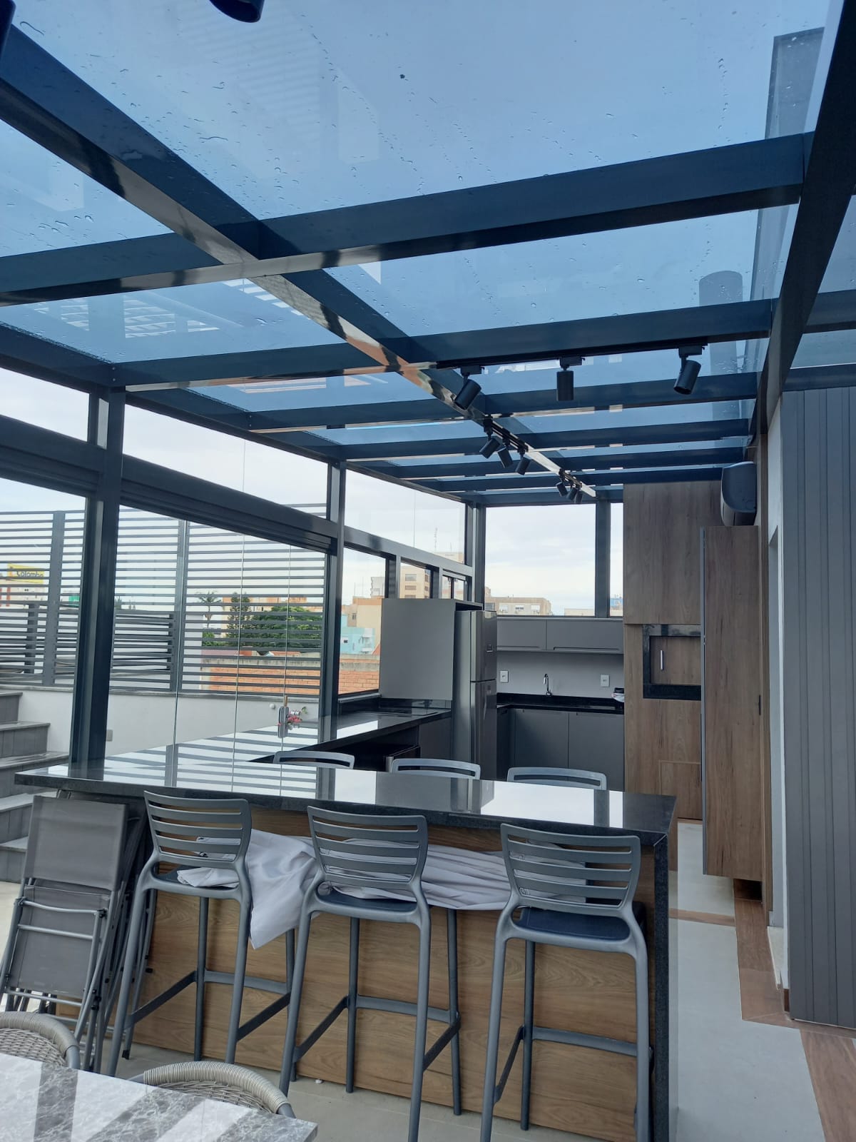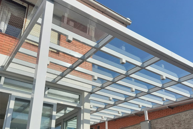 O telhado de vidro temperado e telha térmica tem boa resistência aos raios solares e à chuva, o que o torna uma opção ideal para locais onde há grande variação térmica e climática. Dá uma aparência mais natural ao ambiente, o que o torna uma possibilidade melhor para ambientes abertos.