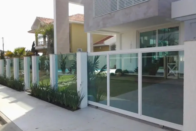 Este é o sistema mais moderno para proteger e decorar a frente de sua residência ou empresa. O Muro / Portão de vidro e alumínio oferece muitas vantagens, a maior delas é que o muro de vidro permite a visão panorâmica contribuindo para a segurança do patrimônio.